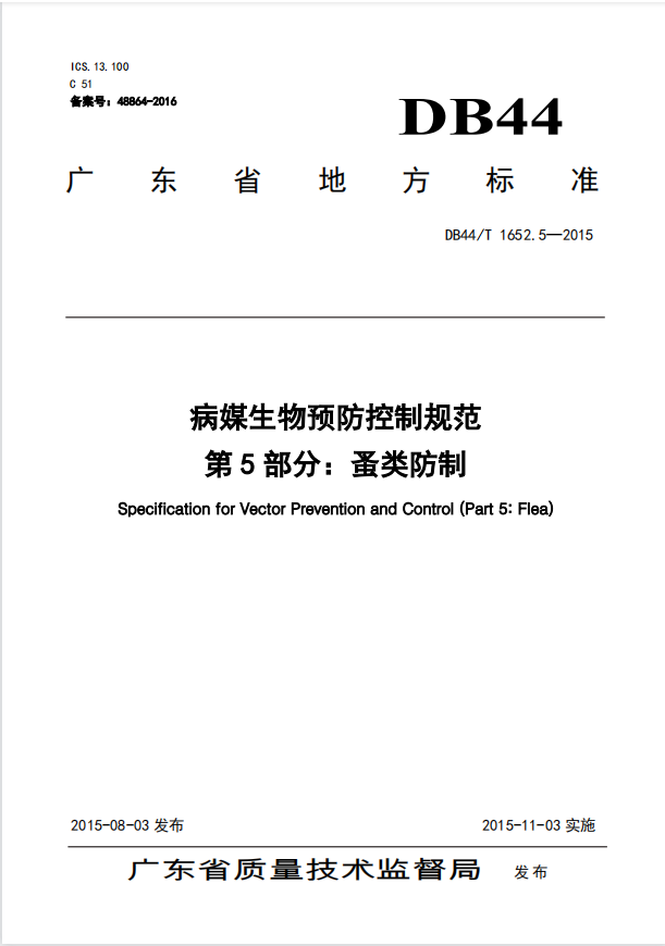 DB44T+1652.5-2015+病媒生物预防控制规范+第5部分+蚤类防制2022-12-01